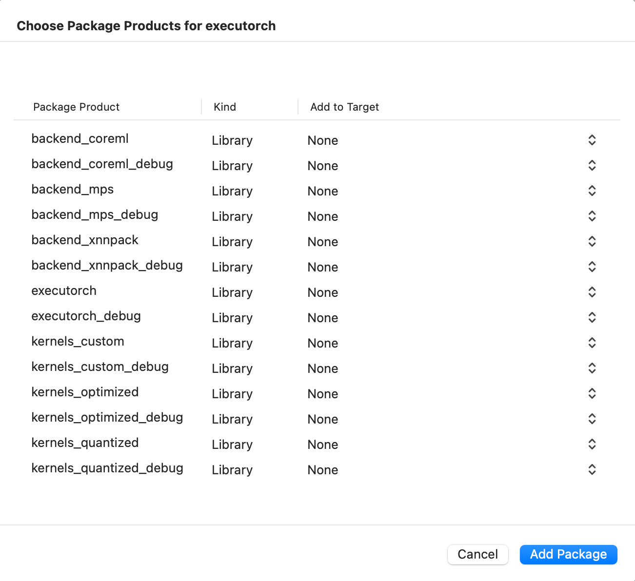 .product(name: "backend_xnnpack", package: "executorch"),